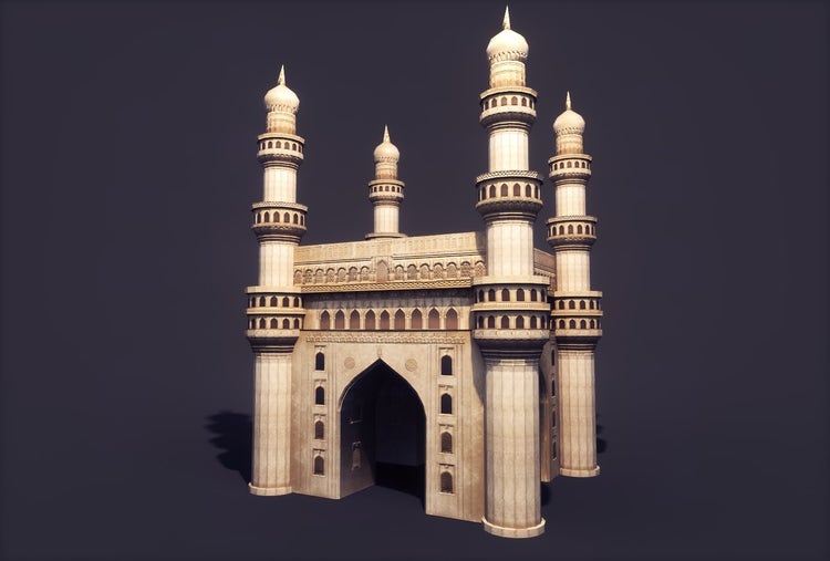 Let’s go into a couple of asset breakdowns, for the rickshaw and the Charminar, a huge mosque in Hyderabad.