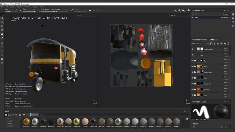 We use the default smart materials and tweak the parameters to get the desired results. We then pick colors for the auto, followed by the addition of grunge and dirt materials. Later, we export the auto textures with the Unity Metallic export preset. After that, we assemble the auto inside Unity with all the textures. As we needed a lot of skins for a single auto, Substance was really handy in making quick changes and texture iterations, so that we could check them out in Unity.
