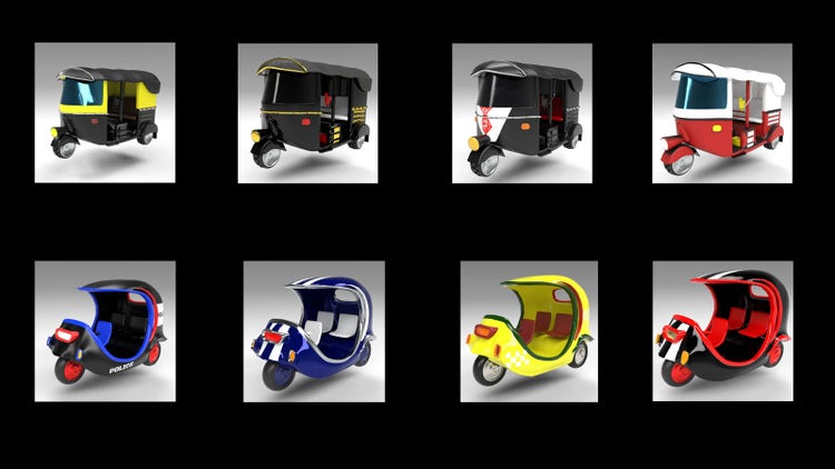 We spent quite a bit of time working on this semi-real style of Indian tuk tuks. We needed a lot of skins for these tuk tuks; this is a freemium game, so these skins were to be used for monetization in the game.