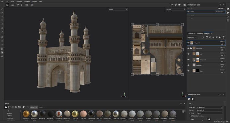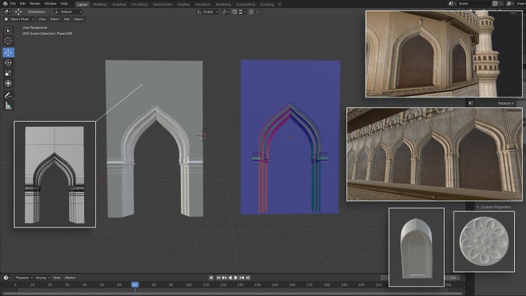 Making detailed Charminar patterns in Blender and applying them in Substance Painter.