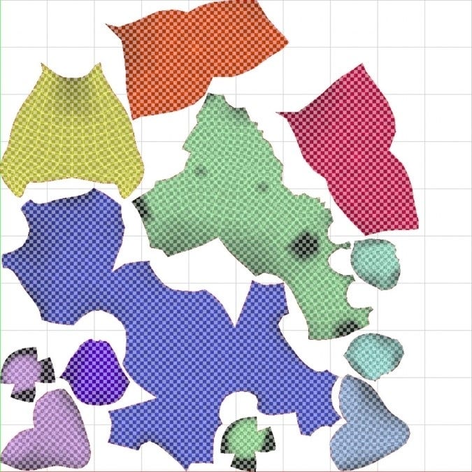 An update to the auto UV unwrapping feature, with improved segmentation for organic meshes: Automatic UV unwrapping now provides more natural segmentation. Consider the example of the unicorn mesh below – first, the UV unwrapping carried out by the previous version of Painter: