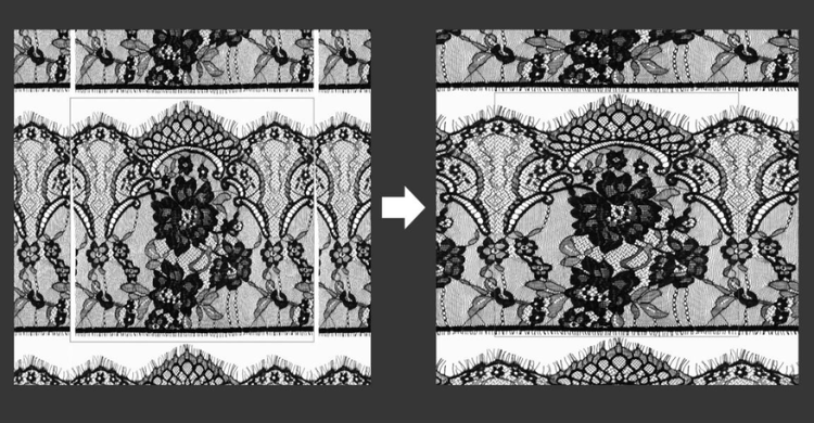 In this case, the lace is pure black, I just chose Crop Grayscale to proceed, by adjusting the position of the picture boundary to fix the tiling.