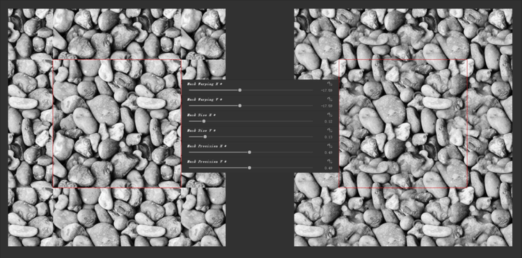 It’s a painful thing to handle the photo seams, but we can process seams automatically with Make it Tile Photo Nodes, and the parameters can also help better optimize the seams according to the requirements, then the combined effect can be optimized by adjusting the distortion and width of the seam area for blurring the integrate effect.