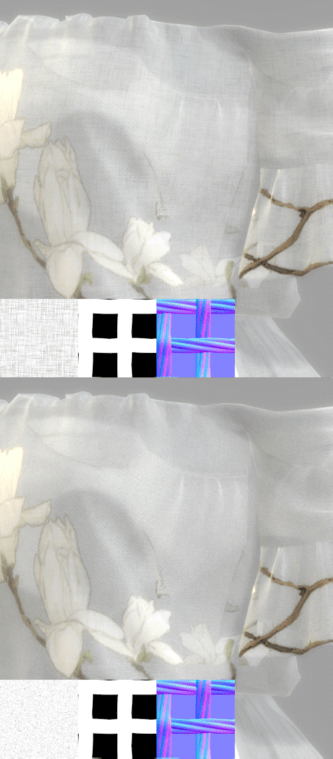 When creating materials for Shining Nikki, I did a deep study of fabrics in order to achieve a high-level quality. The most important difference between fabrics is the weave. Through texture combination, players can make numerous changes and enjoy the small details.
