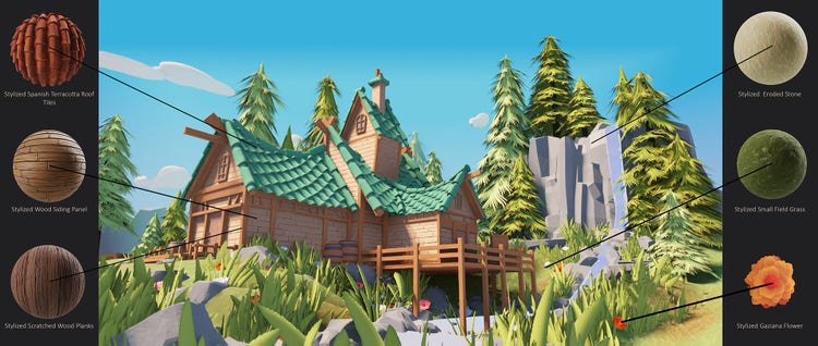 The Substance 3D Assets team just added 100 new materials in the collection! Dedicated to stylized art, this starter kit covers all your basic needs for the creation of mobile game art - or more.
