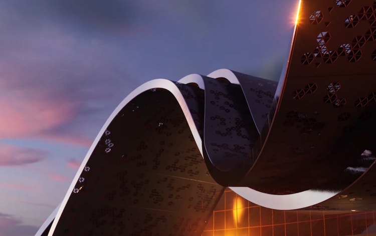 For an added bonus, you can animate 2 truly kinetic curtain walls. But you can still explore movement with the 25 materials, you just need to import a bitmap that will drive the the layout of the openings and closings in the kinetic pattern. Suddenly, your walls open and close in response to the elements.