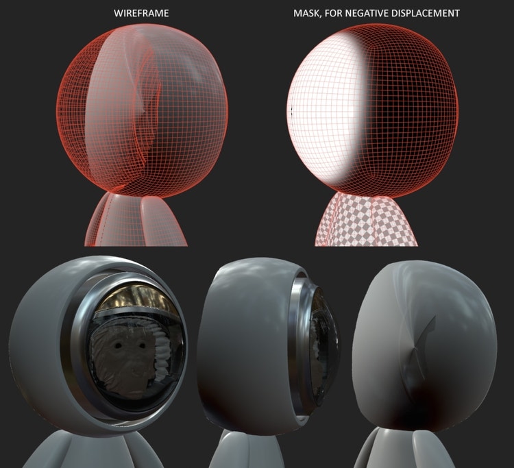 The spark that started the project was my interest in designing robots and mechanisms. At the beginning I had in mind the idea of making a robot for the contest, to try out the various possibilities to create a hard-surface piece. But after some iteration and experimentation with the displacement I realized that the design reminded me of armor.