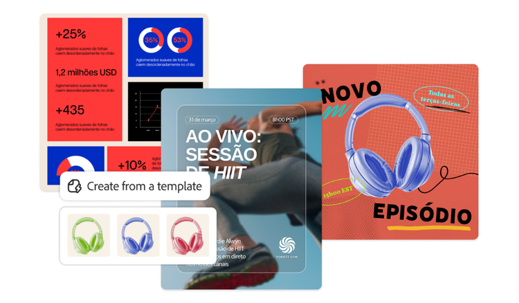 - Crie facilmente conteúdo marcante com os modelos do Adobe Express