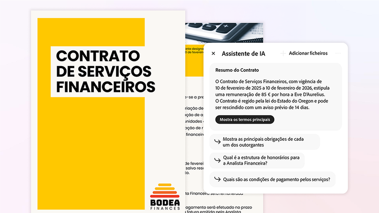 Trabalhe de maneira mais inteligente com o Assistente de IA no Acrobat Studio.