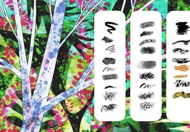 Baixe os pincéis desejados e salve-os com os demais arquivos de pincéis da Adobe (ABRs) no notebook ou iPad. No Photoshop para desktop, clique no arquivo ABR enquanto o Photoshop está em execução para adicioná-los automaticamente ao painel Pincéis. No Photoshop para iPad e no Adobe Fresco, abra o painel de pincéis de pixel e clique no botão +, procure o arquivo ABR e selecione-o para adicionar os pincéis.