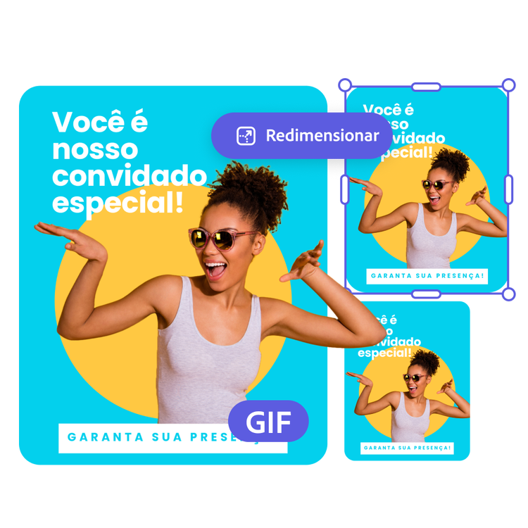 O Adobe Express também facilita o compartilhamento do seu arquivo GIF em todas as redes sociais. Com a ajuda dos recursos de edição de conteúdo em GIF, você muda na hora a proporção ou faz recortes para capturar os momentos que quiser do seu vídeo. Com o app Adobe Express no seu dispositivo você vai conseguir converter e editar rapidamente, não importa onde estiver. Grave seu vídeo, edite, converta para GIF e compartilhe nas suas redes sociais. Em qualquer lugar, com o Adobe Express você terá todas as ferramentas necessárias para se conectar e impressionar seu público.