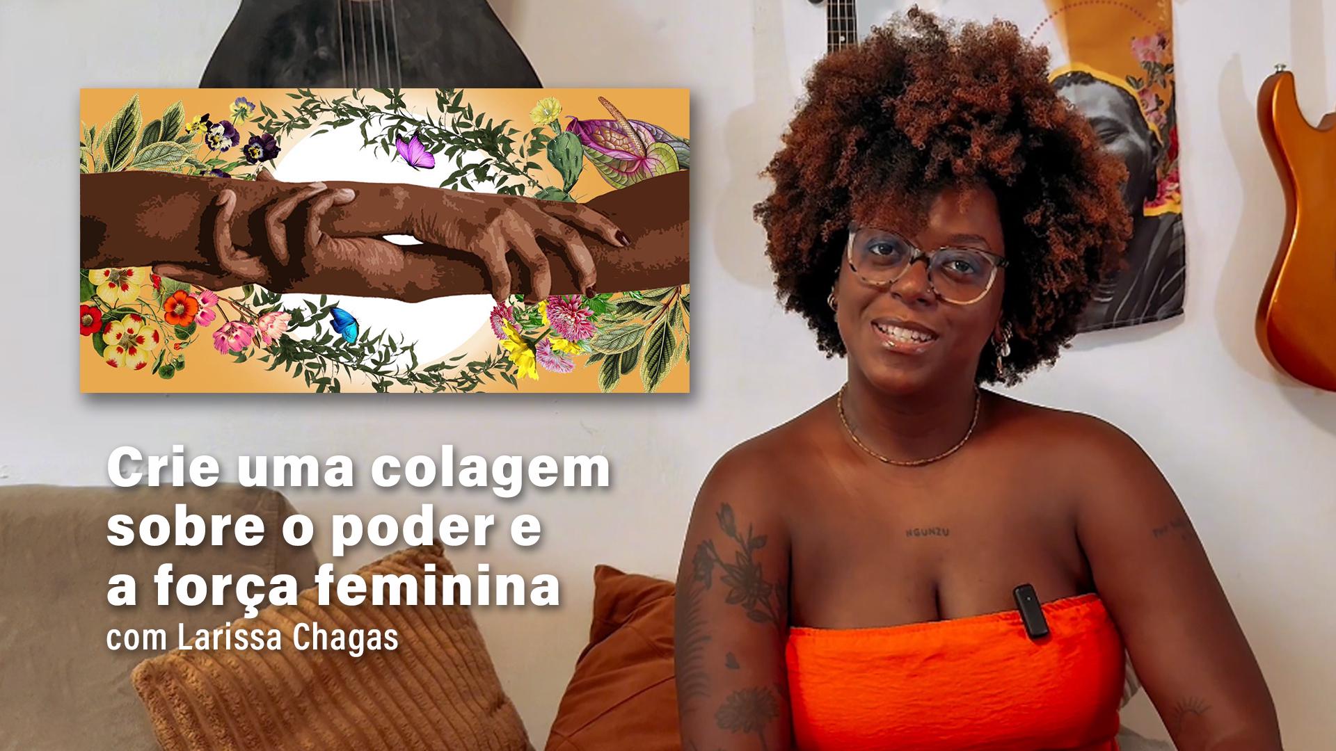 Nascida em 1995, filha de Andréa Calixto e Renato Alves, neta de Dona Ednéa artesã, Larissa Chagas é arquiteta, apaixonada por artes visuais, flores, folhas e estampas; a artista, já encantada pelo mundo das colagens, ingressou no ramo com o objetivo de propagar uma outra realidade visual e sensitiva da população negra, através de sorrisos, corpos expressivos, e principalmente sentimentos , esta ressignifica fotos com novas cores e elementos botânicos.
