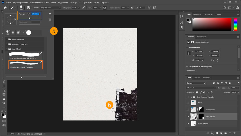 6. Теперь рисуйте черной кистью с текстурой, чтобы скрыть части текстуры и создать нечеткие края.