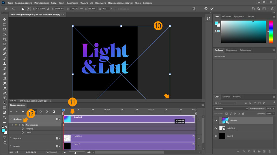 10. Масштабируйте градиент. Нажмите на Enter/Return, чтобы подтвердить изменения.