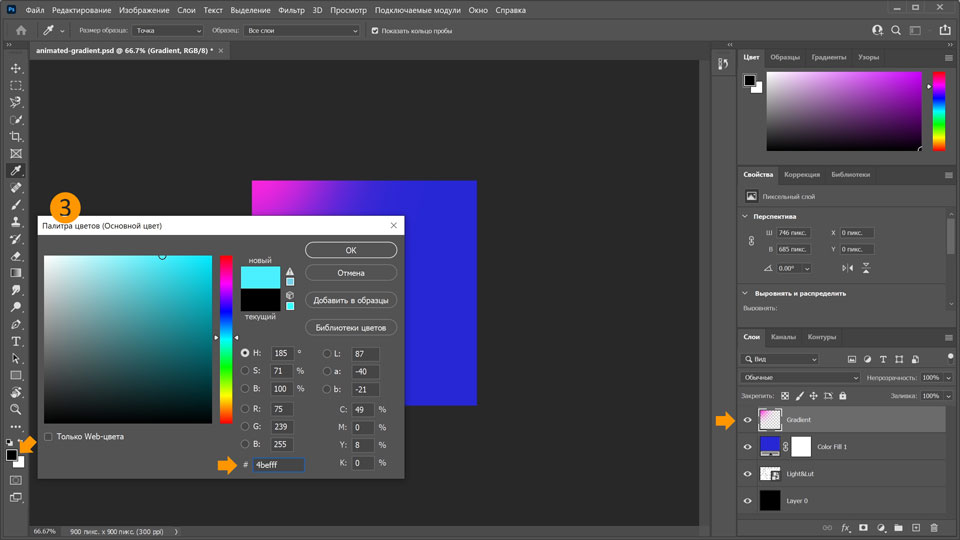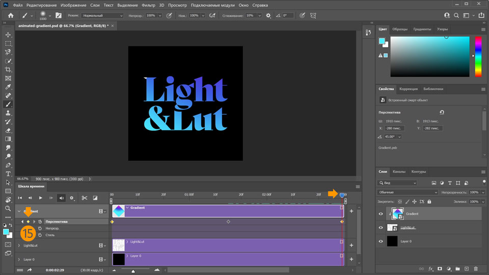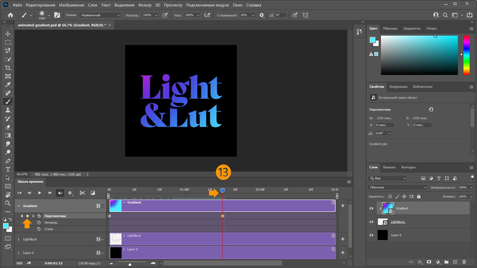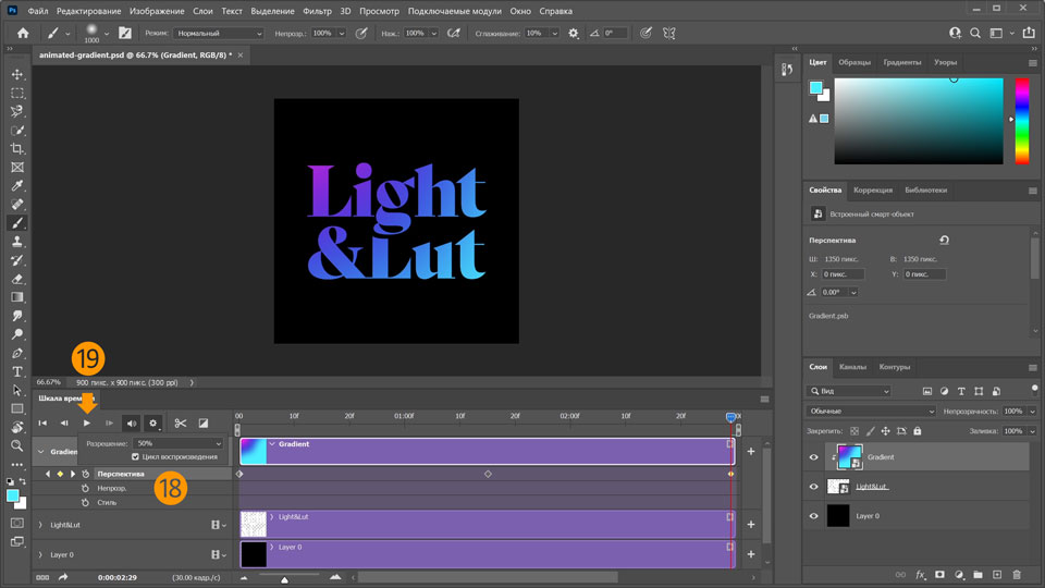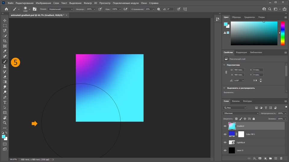 1. Скачайтематериалы к уроку и откройте файл animated-gradient.psd в Photoshop.