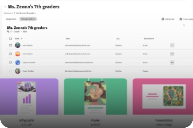 - Kreativa resurser av högsta kvalitet och elevvänliga Adobe Stock-bilder ingår, plus säker bildsökning efter bilder som är åldersanpassade för elever.