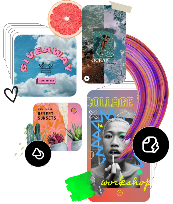 Bli inspirerad och spara tid med mallar som har designats av experter och som hjälper dig att komma igång. Adobe Express har en ständigt växande samling av stående, liggande, kvadratiska och vertikala mallar för att skapa design som sticker ut i alla kanaler och på alla enheter.