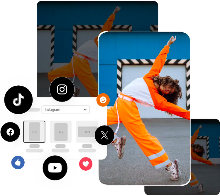 Ändra storlek på videoklipp för delning till målgrupper på alla dina plattformar.