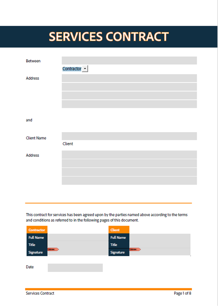 Customise a PDF contract template. Start with a contract template and customise each section to cover what you are agreeing to with your clients.