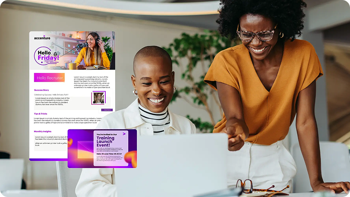 Keep every piece of content in sync. Easily access your approved brand assets. Quickly review and approve designs. All without leaving the app you're already in.