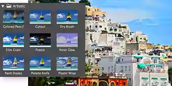 Dodajte svojej fotografii osobný nádych so širokou škálou filtrov ťahu štetcom. Simulujte pointilistický obraz použitím filtra pixelácie alebo vytvorte efekt koláže s filtrom vystrihovačky.