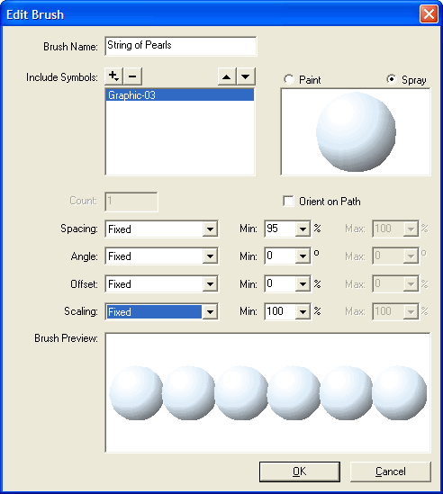 Select the pearl and choose Modify > Brush > Create Brush to convert the pearl to a brush. In the dialog box that appears, click Convert.