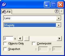 Fill the Lens object with a lens fill, using a 2X magnification setting.