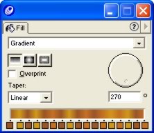 Use the Fill inspector to create and apply a multi-colored linear gradient using the Wood Light, Wood Medium, and Wood Dark swatches. Apply each swatch several times in random order to create a realistic wood effect.