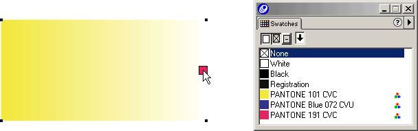 You can quickly define the start and end colors of a gradient by dragging color swatches directly onto the ends of the gradient.