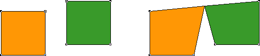 Selected points on two objects before aligning (left) and after aligning horizontally and vertically (right)