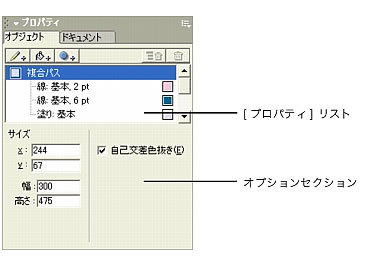 オブジェクトパネルには、オブジェクトに適用された線と塗りが表示され、編集や順序変更を行うこともできます。