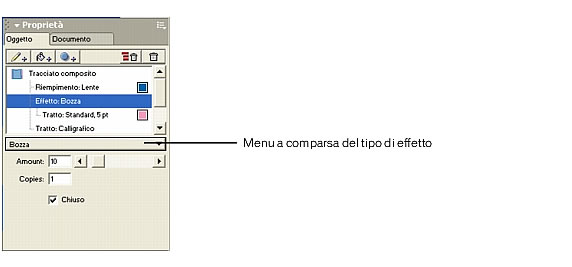 Nell'area attributi del pannello Oggetto, fare clic sul menu a comparsa degli effetti e selezionare Piega.