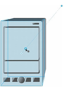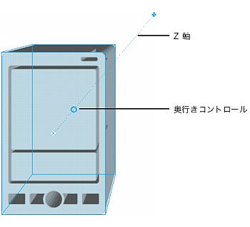 青い 3D 枠が、元の奥行きの約半分になるように、奥行きコントロールを中心点の方向にドラッグします。