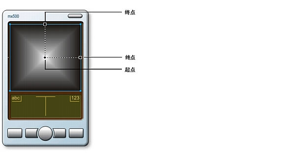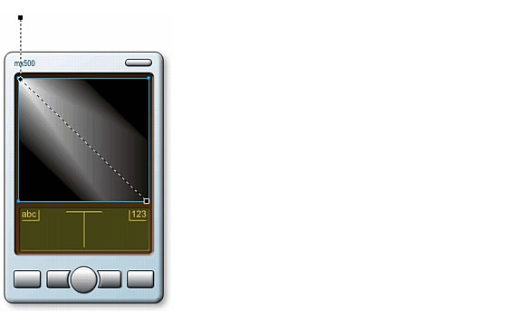 矩形渐变有三个控制块:一个起点和两个终点。使用控制块可给掌上型电脑的屏幕添加光亮效果。
