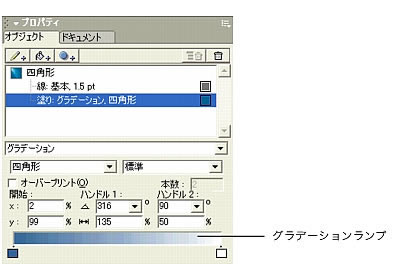 青の色見本がグラデーションランプの下に表示され、オブジェクトに新しいカラーが追加されて、再描画されます。![]() |