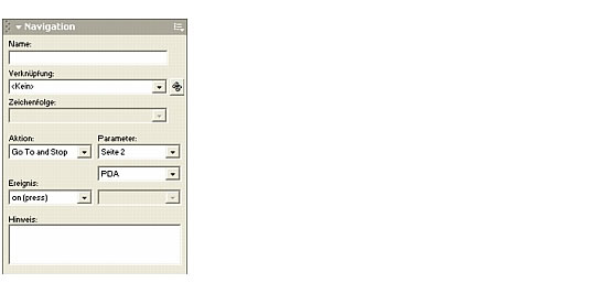 Im nun erstellten Flash-Film wird Seite 2 angezeigt, wenn Sie die Maus ber dem Bildschirm des Organizers positionieren. Wenn Sie auf den Bildschirm klicken, werden Seite 3 angezeigt und eine Animation abgespielt. |