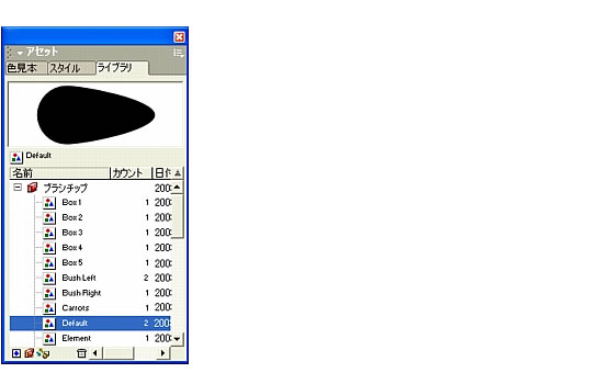 ライブラリパネルが表示されていない場合は、[ウィンドウ]-[ライブラリ] を選択します。