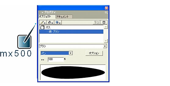 オブジェクトパネルの [線種] ポップアップメニューから [ブラシ] を選択します。