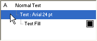 In the Object panel Properties list, select the Text property (the second item in the list) to display text attributes.