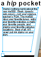The bottom center handle becomes hollow, and the text block's height adjusts to fit its contents. Double-clicking a text block's bottom center handle changes it from a fixed-height text block to an auto-expanding text block, or vice versa. Auto-expanding text blocks automatically resize to fit their contents. You can convert fixed-width text blocks to auto-expanding text blocks in a similar manner by double-clicking one of their side-center handles. |