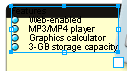 Double-click in the text block to display an insertion point, then highlight all four bulleted lines of text. Be sure to include the bullets. |