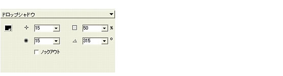 オブジェクトパネルの下部で、次のドロップシャドウ属性を設定します。スライダまたはダイアルを使用せずに値を入力する場合は、必ず Enter キー (Windows) または Return キー (Macintosh) を押します。 |