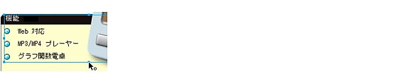 | 底辺中央のハンドルが白抜きになり、テキストブロックの高さが内容に合わせて調整されます。テキストブロックの底辺中央のハンドルをダブルクリックすると、高さ固定のテキストブロックは自動拡張テキストブロックに変わり、自動拡張テキストブロックは高さ固定のテキストブロックに変わります。自動拡張テキストブロックは、内容に合わせて自動的にサイズが変更されます。幅固定のテキストブロックを自動拡張テキストブロックに変換するには、同じように、左右中央のハンドルの 1 つをダブルクリックします。 | |