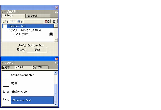 | Brochure Text スタイルのプロパティがまだオブジェクトパネルに表示されているはずです。 | |