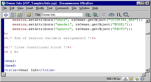 There is one more detail: When UltraDev creates a recordset, it inserts the following housecleaning code at the end of the HTML source code: