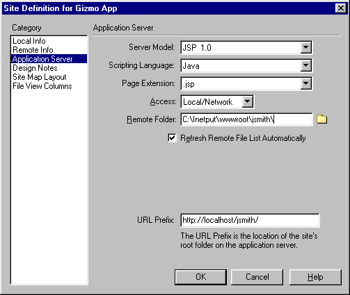 For more information, see "About the URL prefix" in UltraDev help (Help > Using UltraDev), or on page 28 of Using Dreamweaver UltraDev 4. |