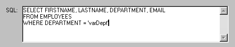 When executed, the SQL statement finds all the records in the employee table with a DEPARTMENT value equal to the value contained in the varDept variable. For example, if the user specifies Operations as the department name, the database query above might generate the following recordset: