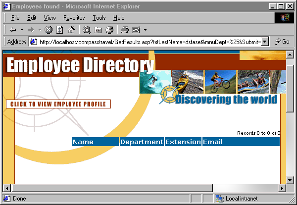 When you run the page in a browser and no records are found, the page no longer displays the record counter or table. |
