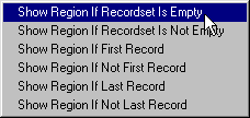 When you run the page in a browser and no records are found, the Show Region server behavior shows the message while the other Show Region server behaviors hide the record-display elements. |