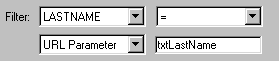 Choose a table column from the Filter pop-up menu. If your search page asks for an employee's last name, choose the appropriate column (in this case LASTNAME). This ensures that the results page will include only those values that match the search parameter. |